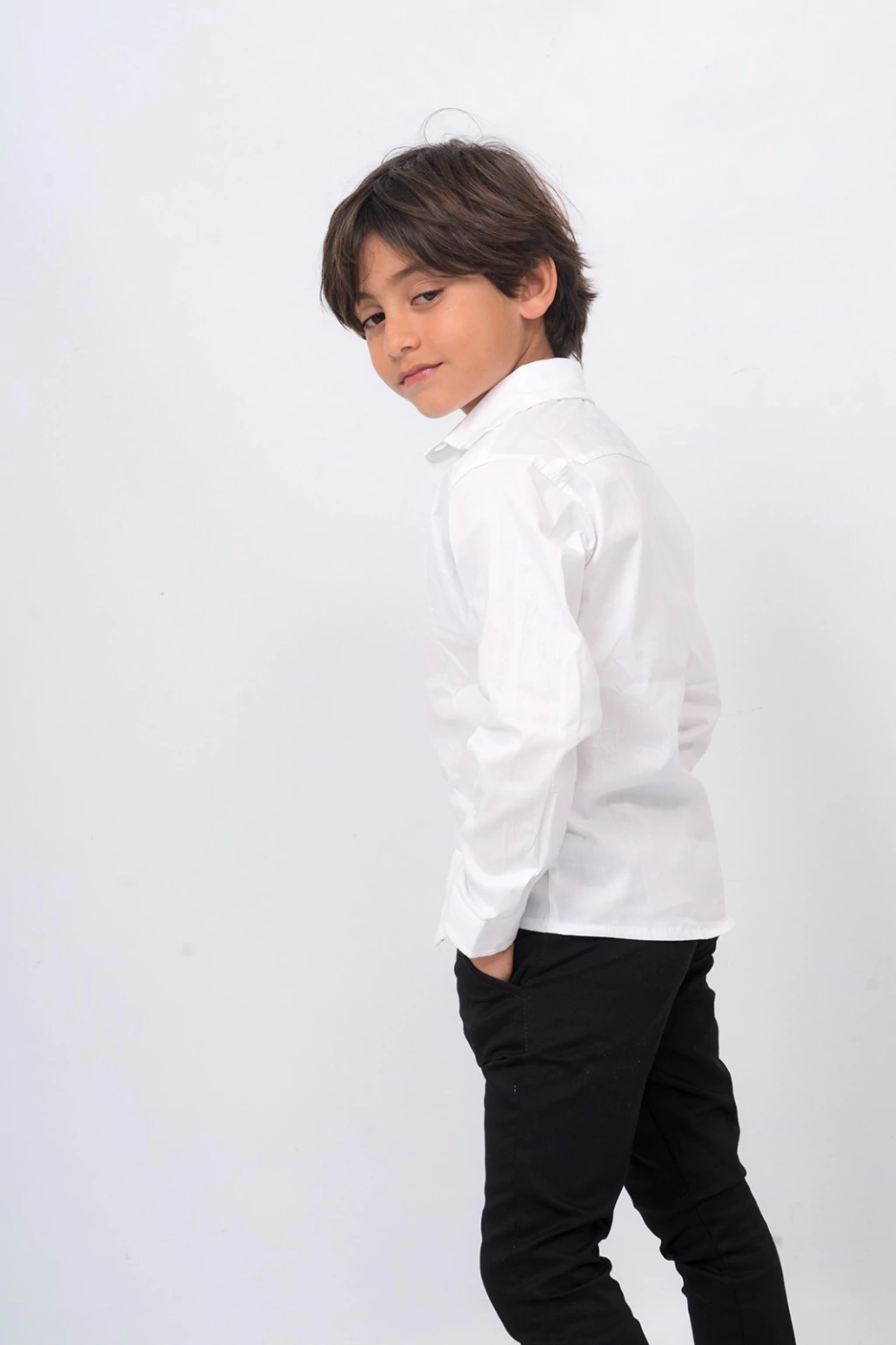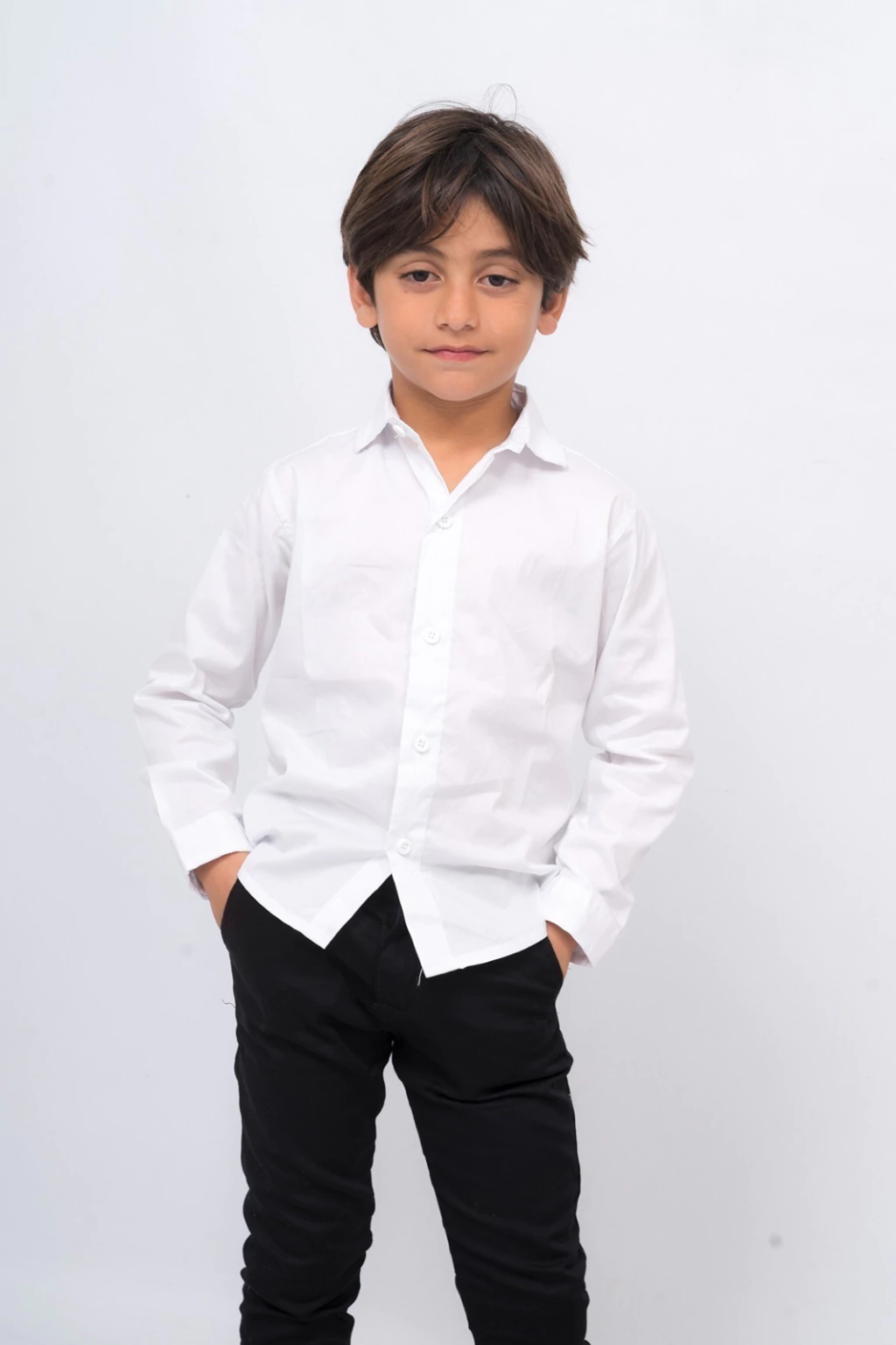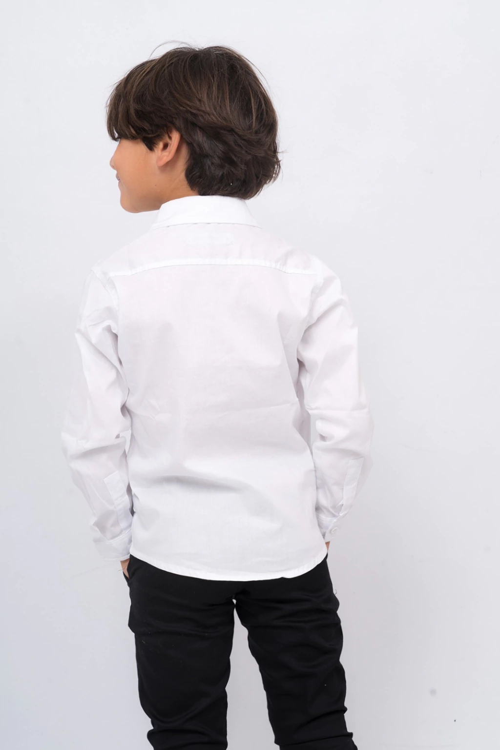 Camisa elastizada de poplin liso. Ojal y botones blancos. Poplin importado.