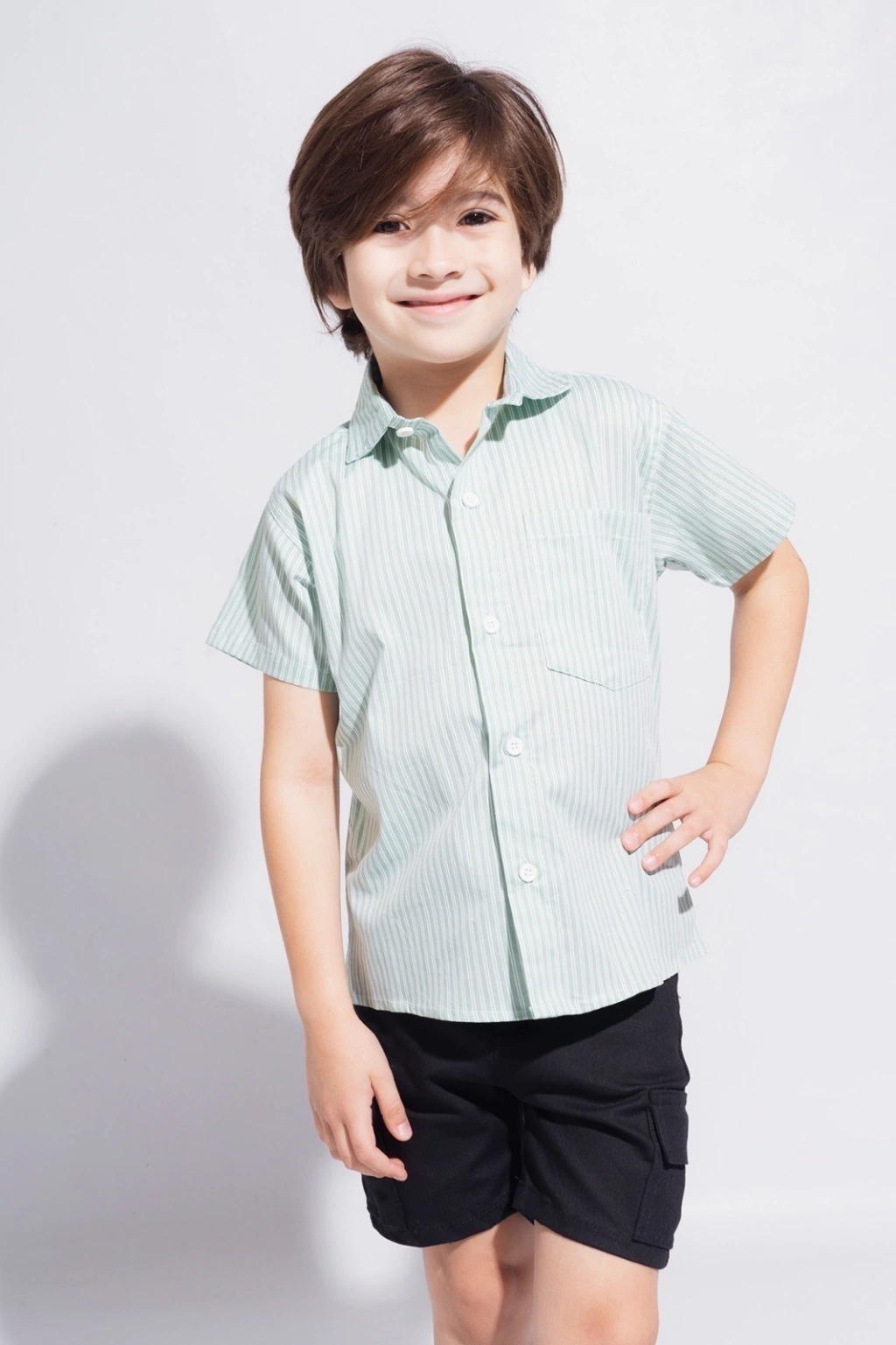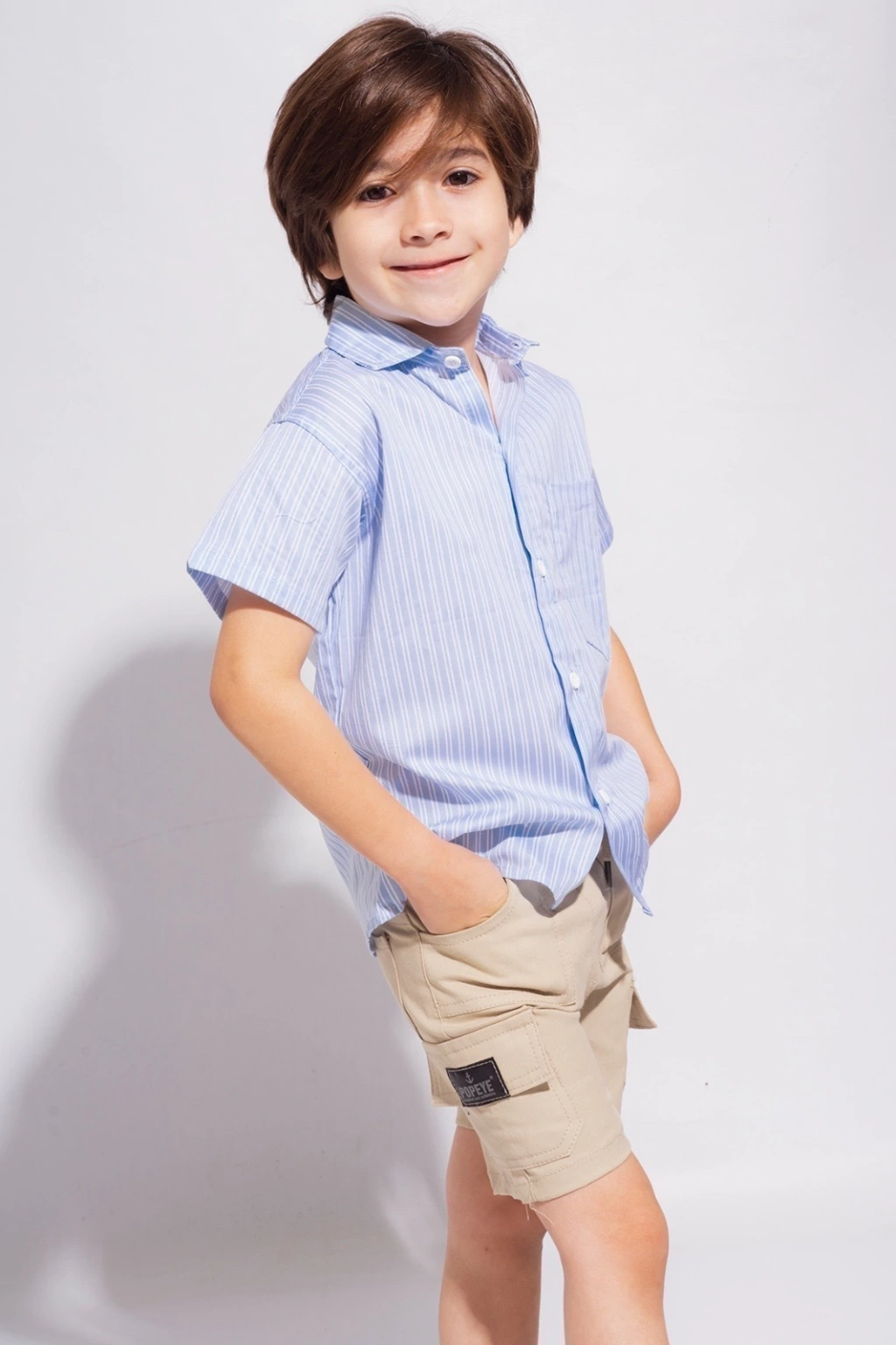 Camisa rayada de poplin elastizado. Con bolsillo.