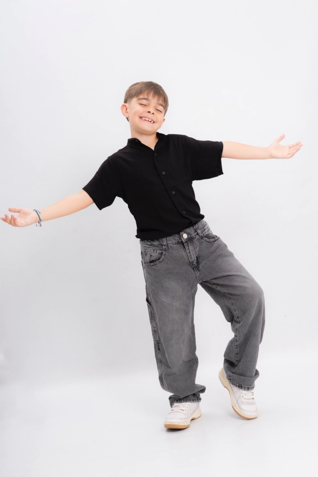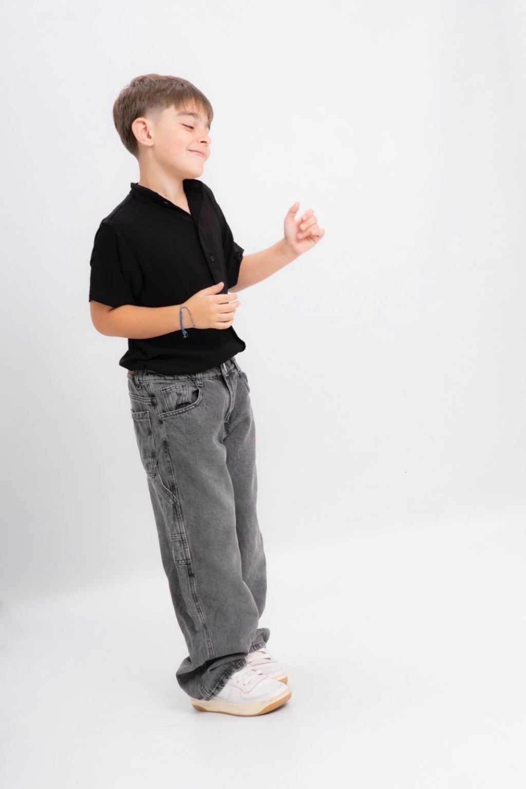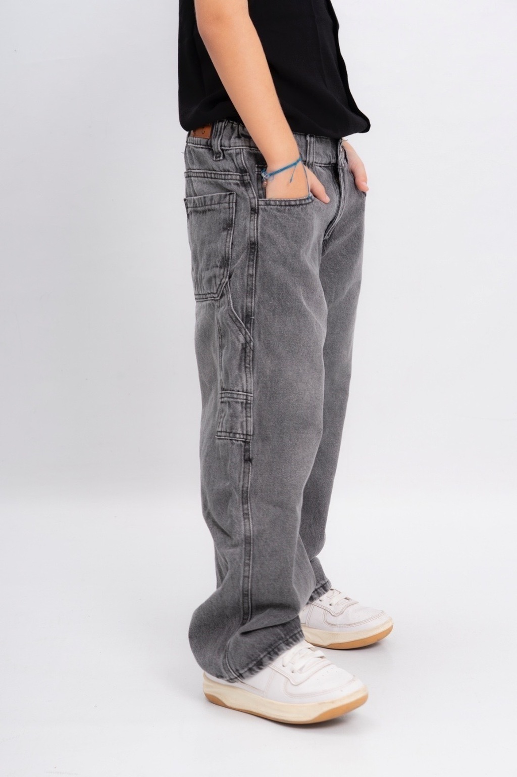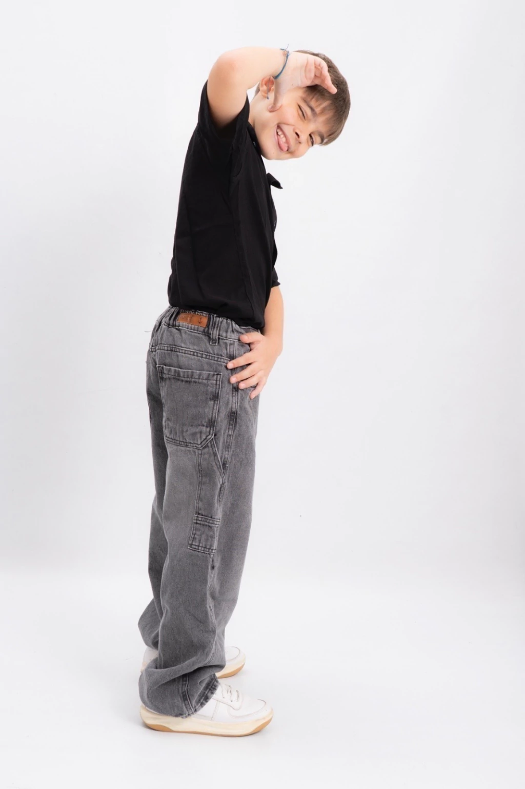 Jean carpintero. Tela rigida. Lavado negro nevado. Corte Baggi.
