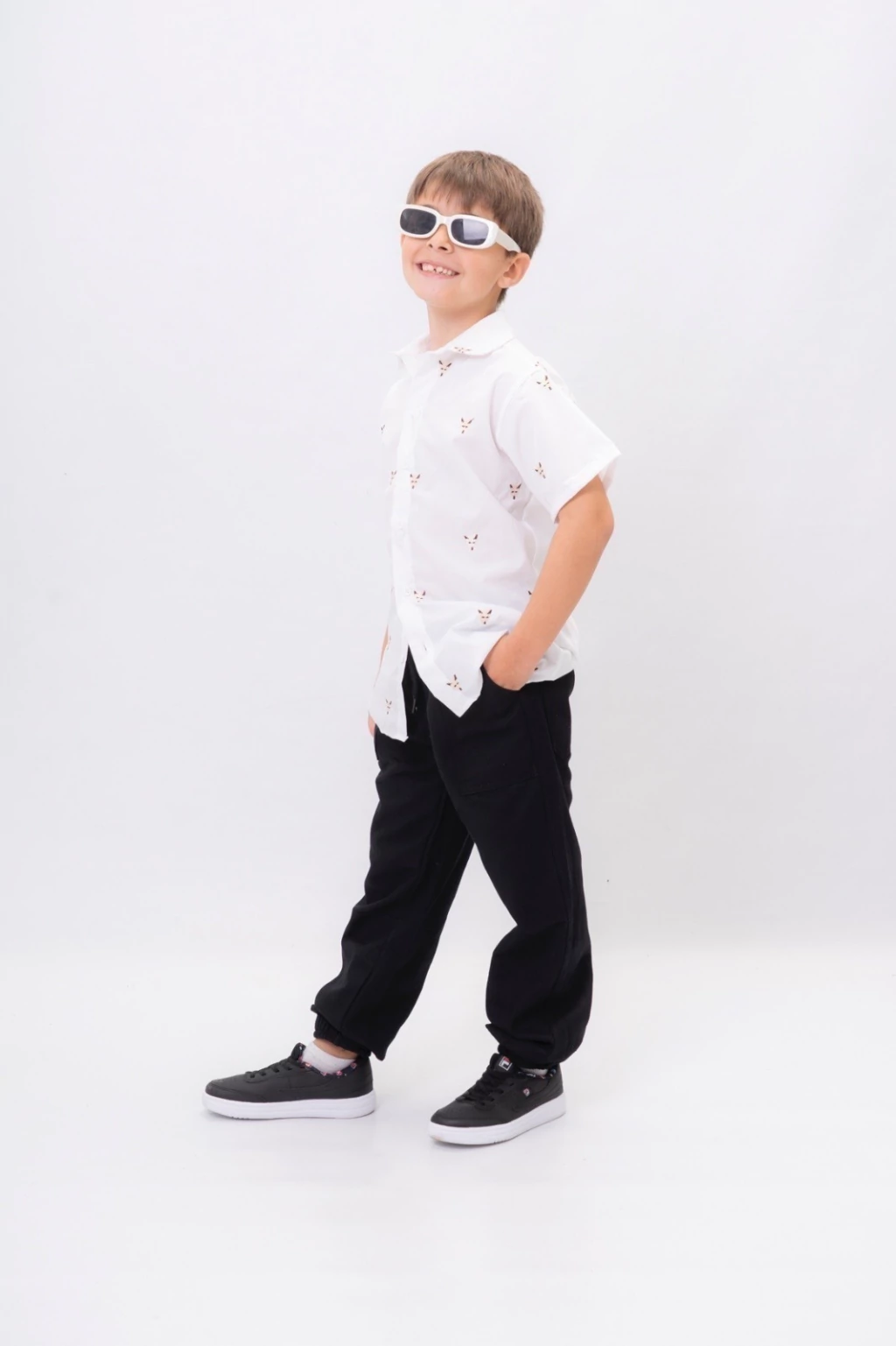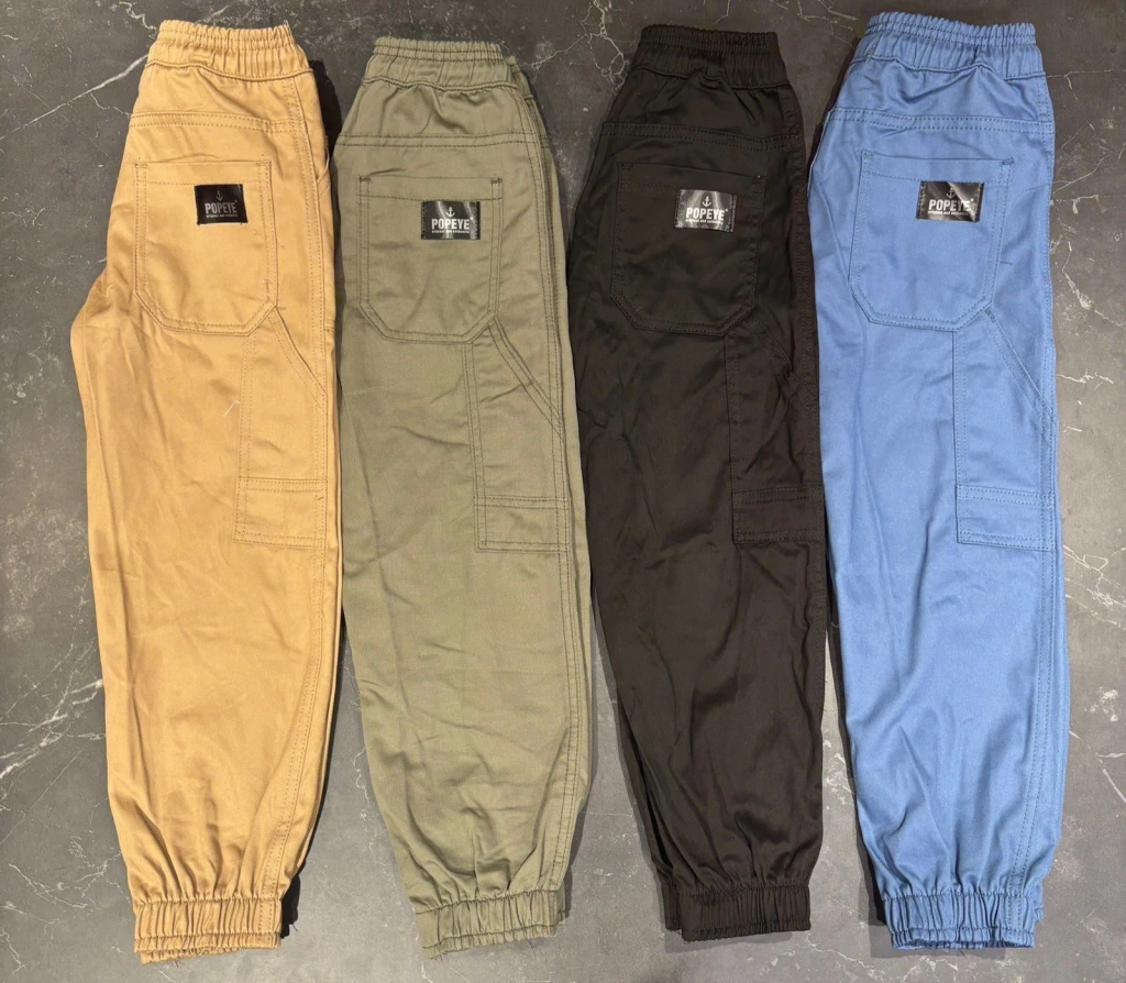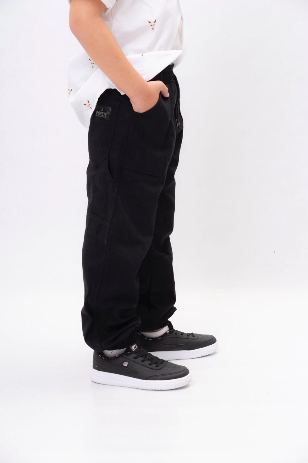 Jogger baggi de gabardina rigida. Con bolsillos plaque y bolsillo carpintero atras.